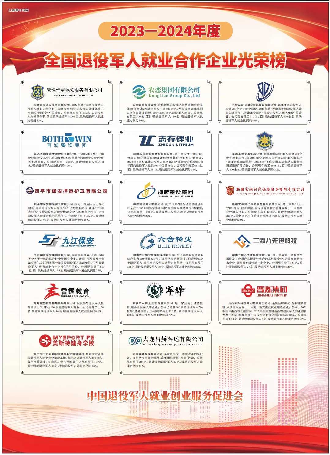 全國退役軍人就業合作企業光榮榜