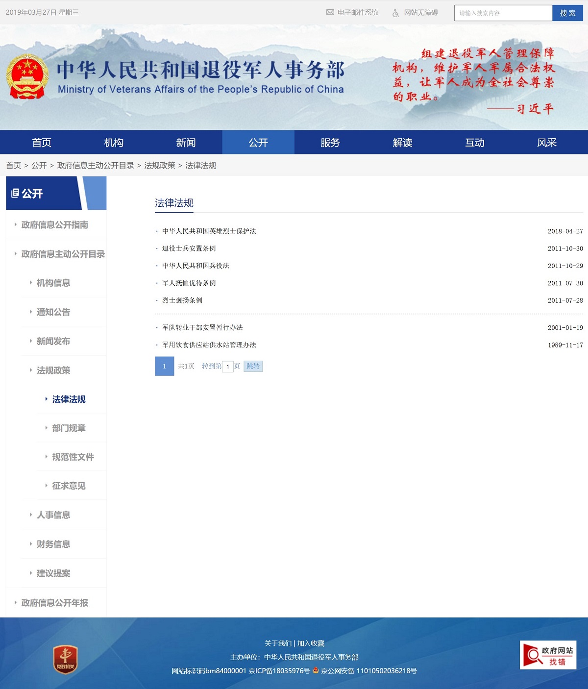 2018年,退役軍人事務部認真貫徹落實《政府信息公開條例》要求,緊緊圍繞退役軍人工作中心任務,認真做好政府信息主動公開和依申請公開工作,編制《政府信息公開指南》和政府信息主動公開目錄,加強主動公開平臺建設,著力做好政策宣傳解讀,建立新聞發布工作機制,政府信息公開各項工作取得積極進展。