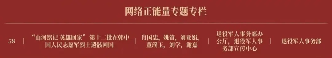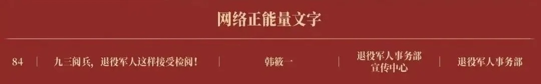 近日,由中央網(wǎng)信辦主辦的2025中國正能量網(wǎng)絡精品征集展播活動揭曉結果,經(jīng)過大眾評審、專家評議、評委線上打分和線下評審以及結果公示,退役軍人事務部共有4件作品入選。
