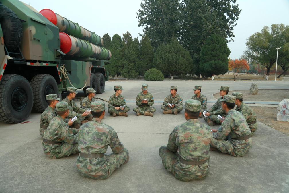中部戰區空軍“模范地空導彈營”開展“鳴鏑講堂”交流活動(2022年10月25日攝)。新華社發(趙勝之 攝)