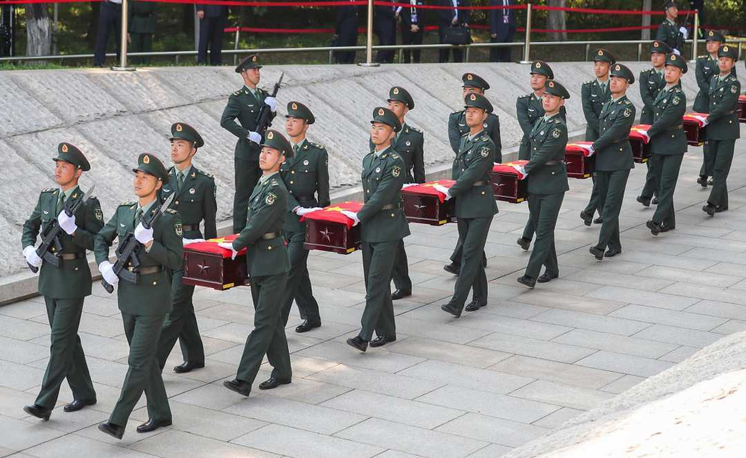 2020年9月27日,中韓在韓國仁川舉行第七批在韓中國人民志愿軍烈士遺骸交接儀式