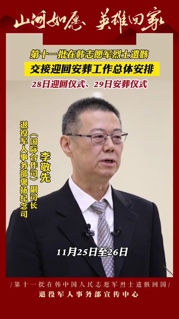 11月28日下午,國防部舉行例行記者會,國防部新聞局局長、國防部新聞發(fā)言人吳謙大校答記者問。,中韓雙方于11月28日交接第十一批在韓中國人民志愿軍...
