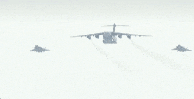 12時07分,空軍專機運-20緩緩降落在遼寧沈陽桃仙國際機場。專機進入中國領空后,空軍兩架殲-20戰斗機護航,并在沈陽機場上空通場,“雙20”同框向志愿軍烈士致以崇高敬意,沈陽桃仙機場以“過水門”航空最高禮儀迎接志愿軍烈士遺骸回家。