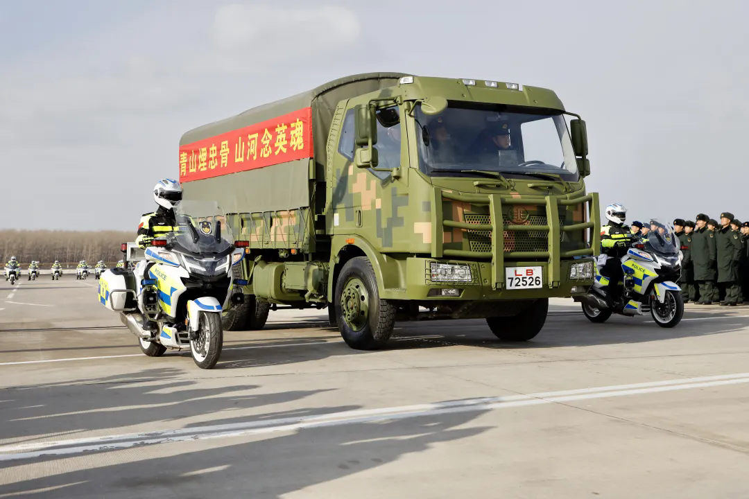 忠魂不泯,浩氣長存。儀式結束后,志愿軍烈士遺骸棺槨由48輛警用摩托組成的騎警車隊護送前往沈陽抗美援朝烈士陵園。29日10時,第十一批在韓中國人民志愿軍烈士遺骸安葬儀式將在該陵園志愿軍烈士紀念廣場舉行。