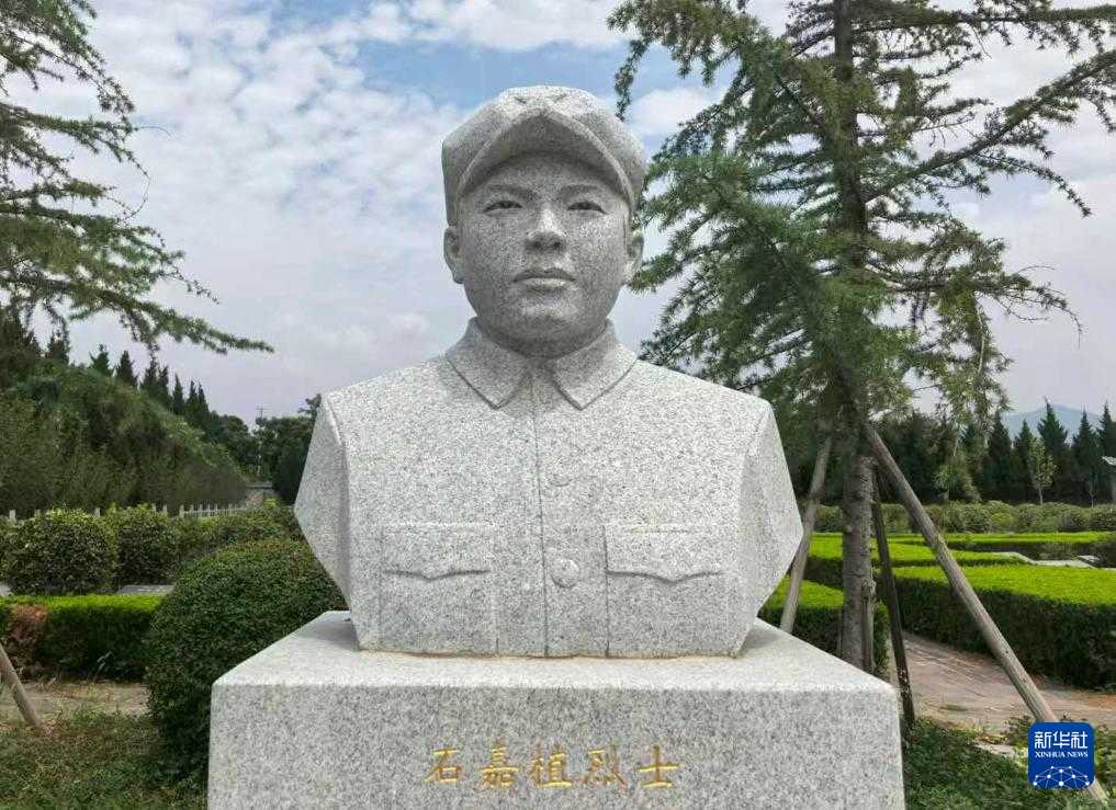 陜西省富平縣烈士陵園里的石嘉植塑像(2025年8月7日攝)。 新華社記者 李亞楠 攝
