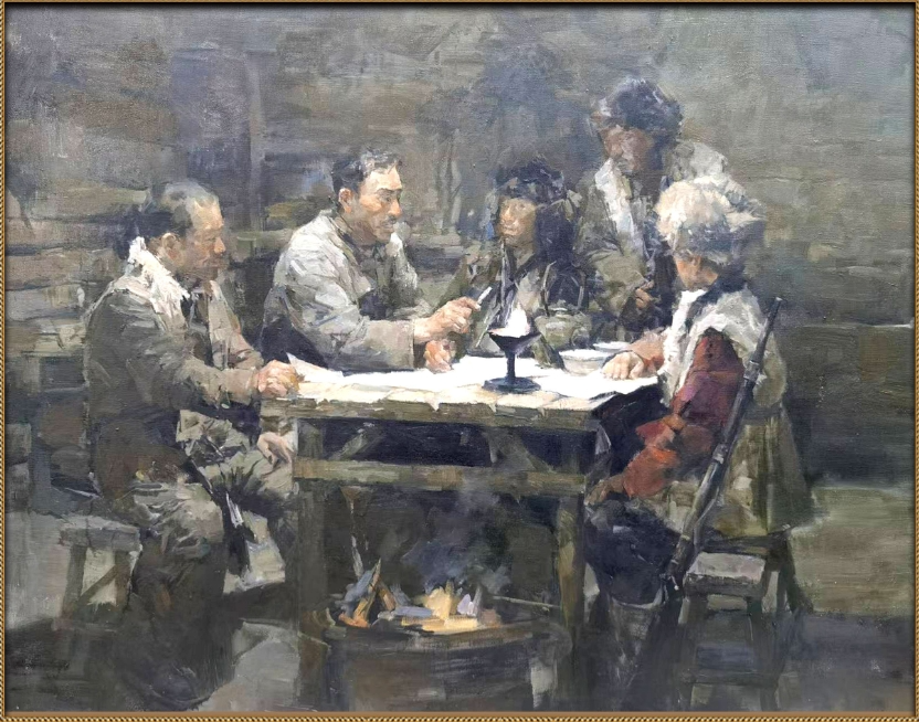 油畫:楊靖宇提出“燈芯”理論。來源:磐石市抗日斗爭紀念館