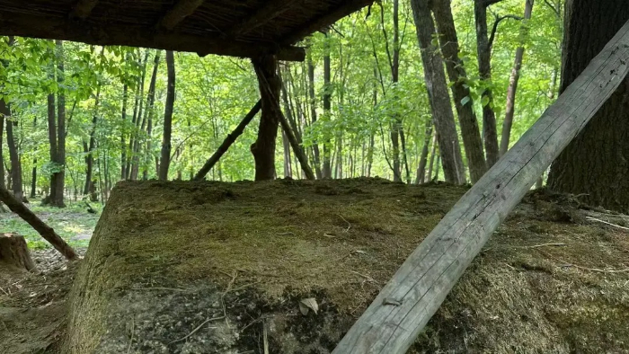 紅石砬子山抗日根據地“地窨子”原址復原物。新華網 張楨 攝